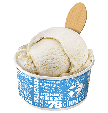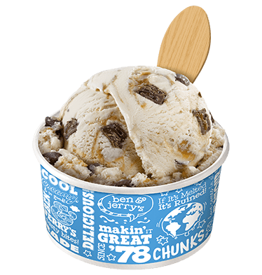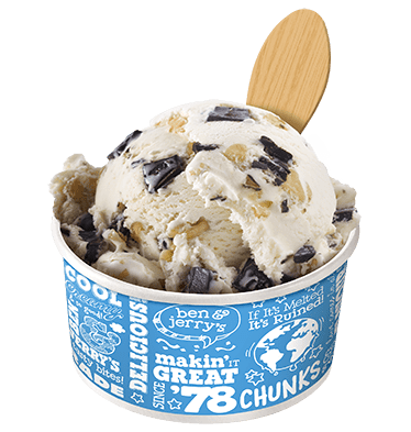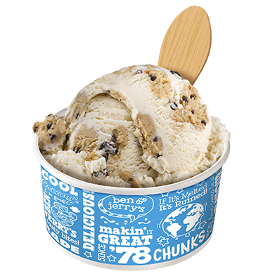 초콜릿 칩 쿠키 도우의 퍼지 덩어리가 들어간 바닐라 아이스크림